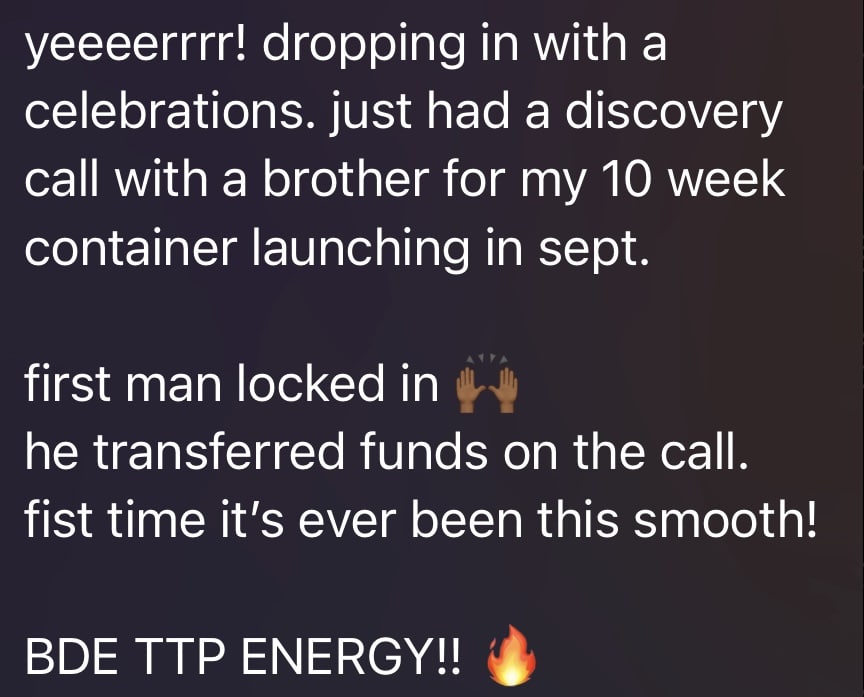 “Men inside have doubled their income, sharpened their leadership, and reignited purpose → all within 10 weeks.”