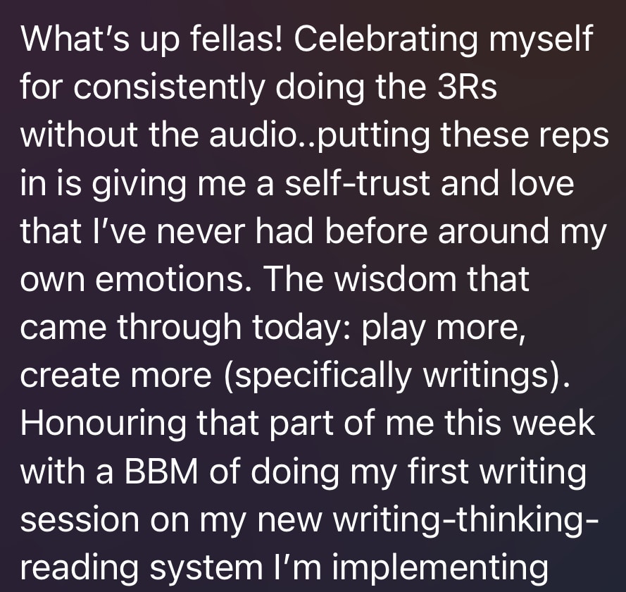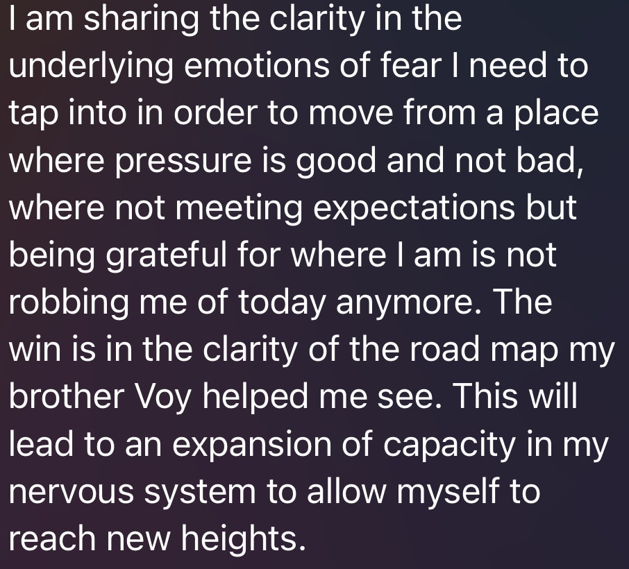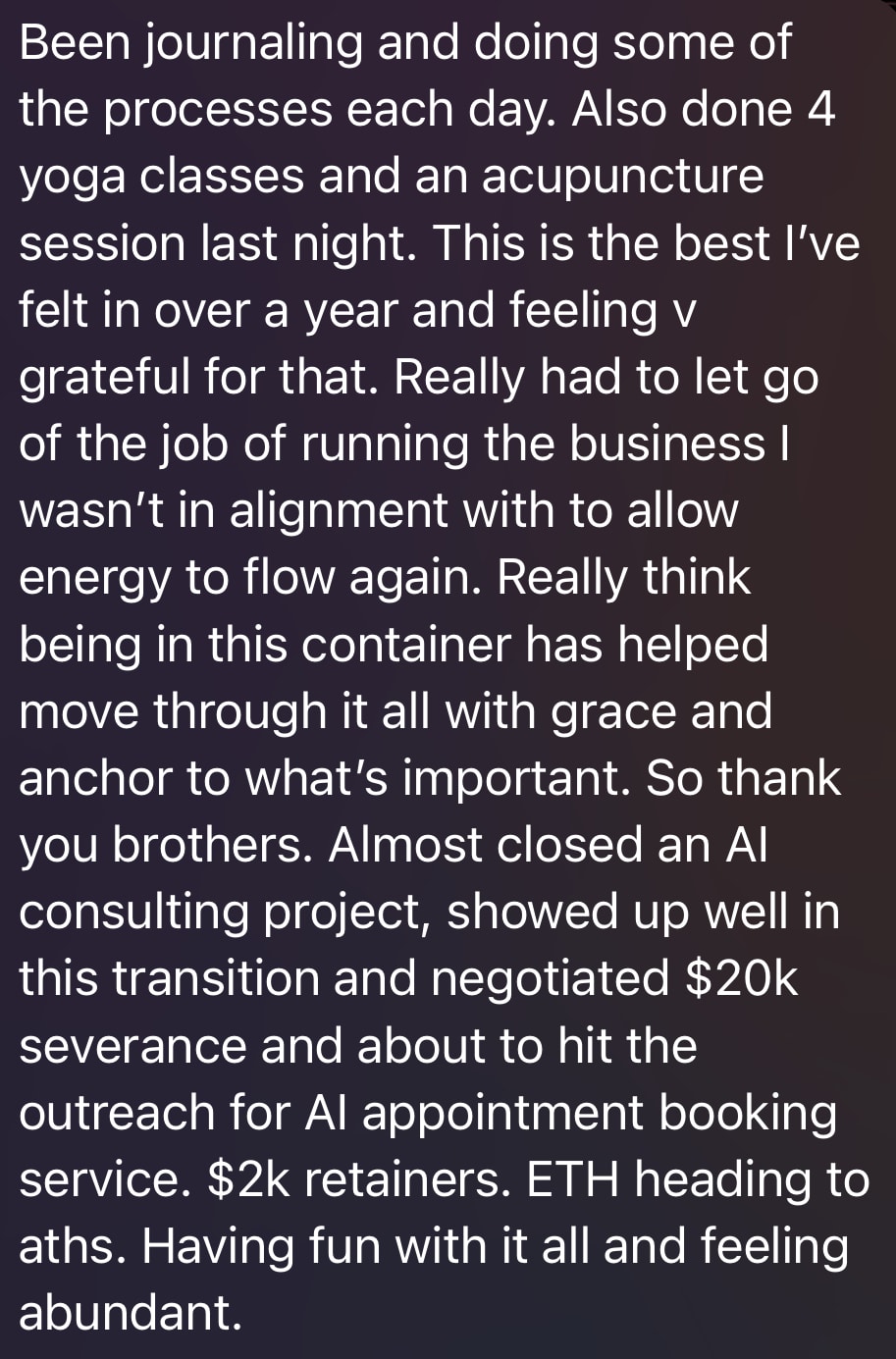 “Uncovered massive identity keeping me stuck. Addiction to the hustle.”