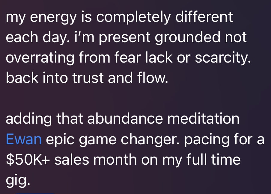 “Stopped thinking hard work equals abundance. Opportunities coming non stop”